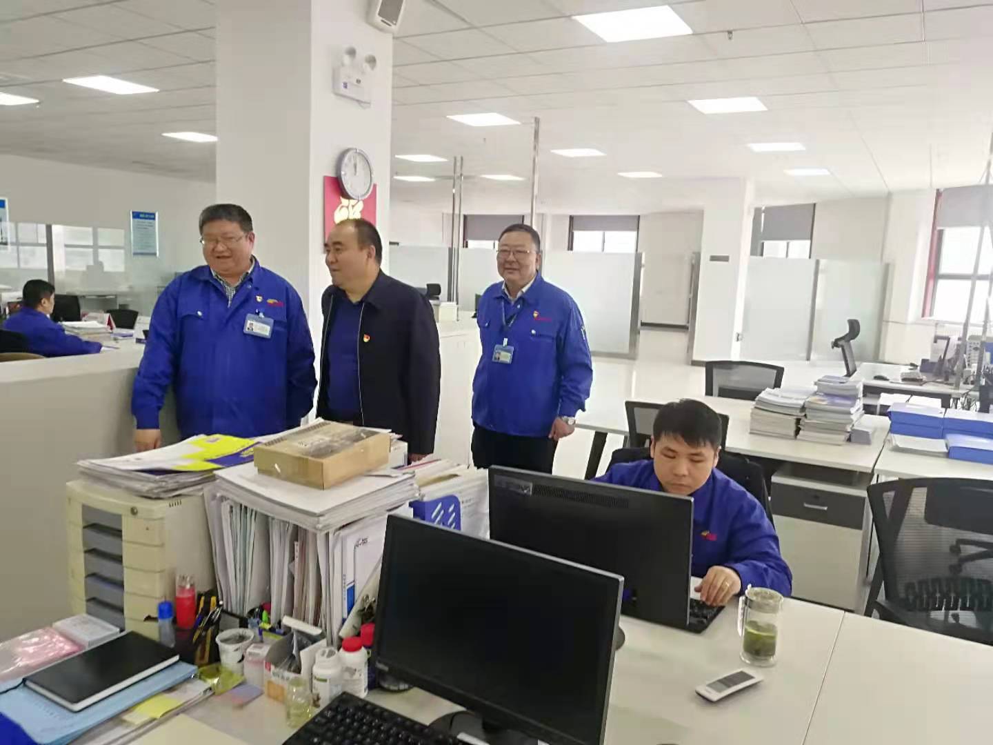 參觀結(jié)束后,第七黨支部的同志們又來(lái)到金陽(yáng)電氣,在公司黨委書記、董事長(zhǎng)史清晨、黨委副書記楊鄭保陪同下,參觀了廠區(qū),隨后,與大家一起座談交流。