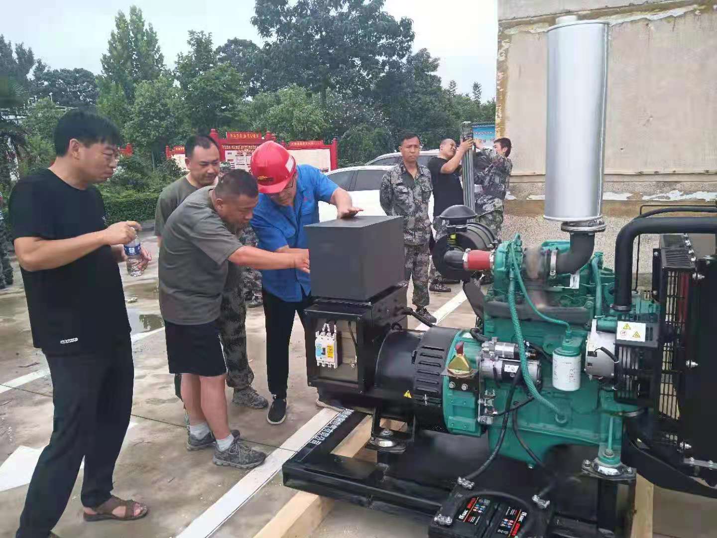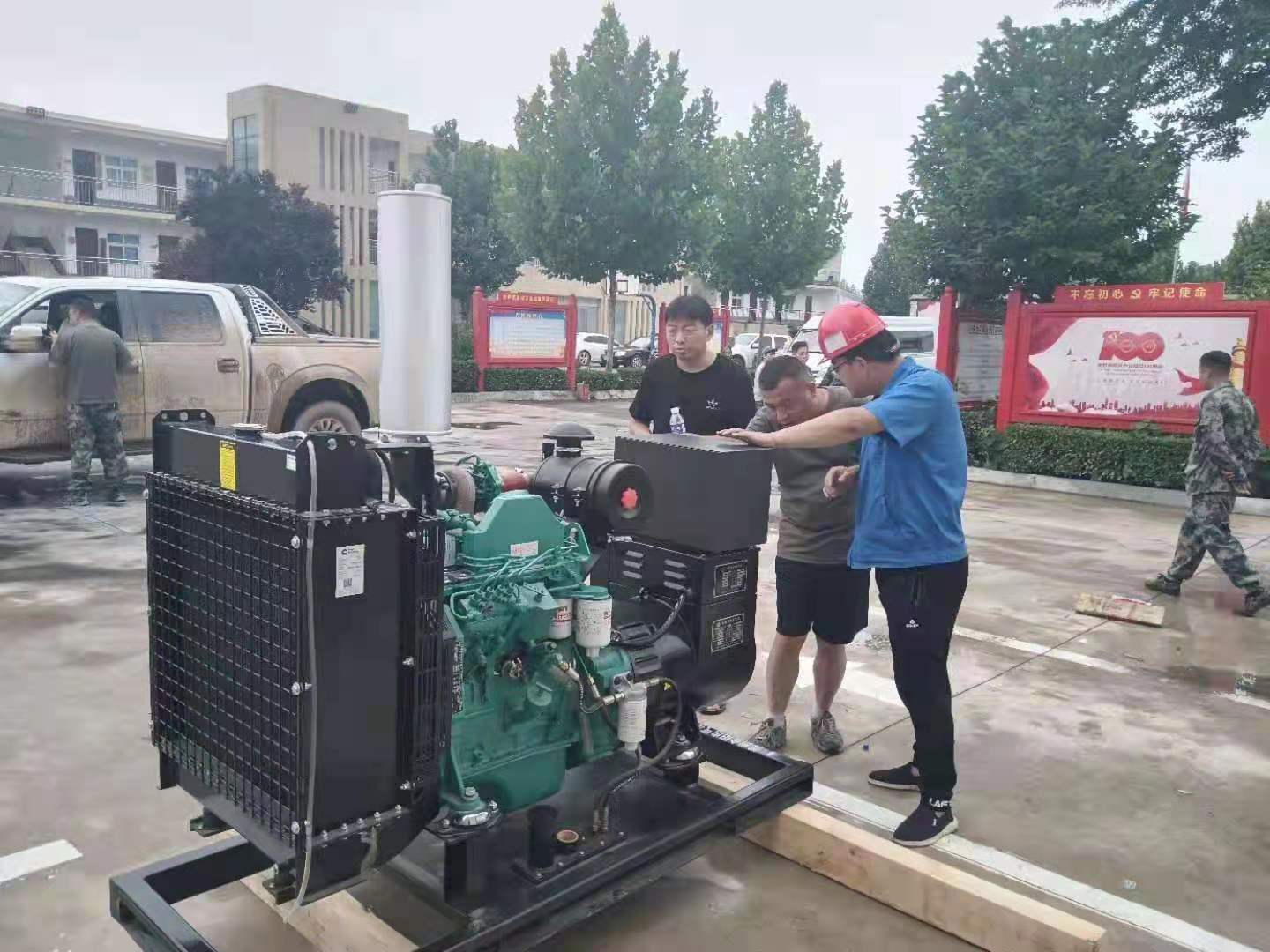 天災何所懼,風雨見真情。汛情發(fā)生后,公司專門成立應急保障隊,根據(jù)防汛需要,將公司生產(chǎn)的多種發(fā)電機組產(chǎn)品送抵各重災區(qū),保障現(xiàn)場用電,為陰云籠罩的災區(qū)人民送去光明和希望。市場部宋志亮、喬文龍連夜裝車,把1臺75kW靜音發(fā)電機組送到鞏義米河鎮(zhèn)并留守保障;李斌、李亞、雷咸穩(wěn)及時把1臺50kW靜音發(fā)電機組送到東區(qū)華為科技城并留守保障;為滎陽市汜水鎮(zhèn)政府運送2臺15kW發(fā)電機組、為滎陽市喬樓鎮(zhèn)運送1臺30kW發(fā)電機組、1臺120kW發(fā)電機組用于救災。在大戰(zhàn)大考中,踐行初心使命,彰顯國企擔當。